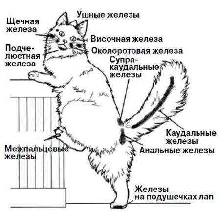 Кошачьи метки представляют собой концентрированные порции мочи с феромонами, причем разграничивать территорию могут не только самцы, но и самки. Помечая место, животное тем самым ставит своеобразный барьер для других животных и напоминание для себя, что тут следует проявлять повышенную внимательность. Причин для этого может быть несколько.