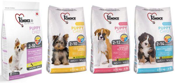 Ассортимент кормов 1st choice для щенков: