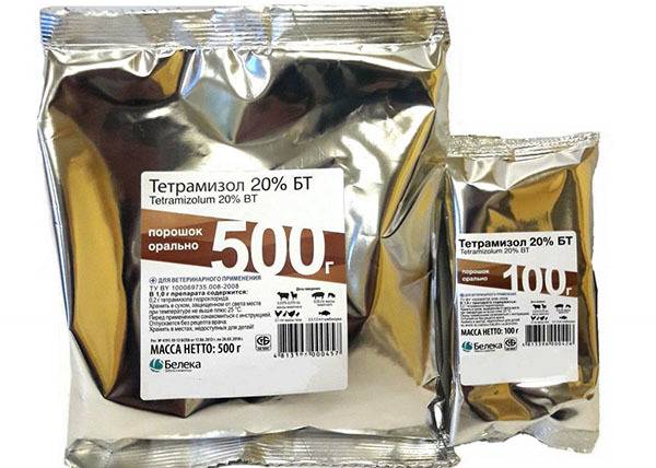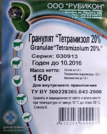 Препарат выпускается в 2-х формах: 10% и 20%. Тетрамизол 20% для овец, КРС, свиней и птиц применяется точно также так и 10%, только все дозы, которые описанные выше в инструкции необходимо делить на 2.