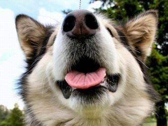 - Мочка носа маламутов является черной. Если же остальное окрас шерстяного покрова является рыжим, то и носик будет ему соответствовать. Также допустим особый «снежный нос». В данном случае подразумевается кончик носика, покрытый белесыми прожилками, контрастирующими на фоне основного оттенка.