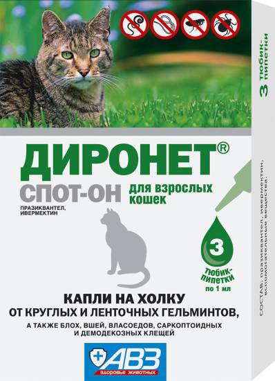 К эффективным противогельминтным медикаментам можно отнести следующие капли от глистов для кошек: