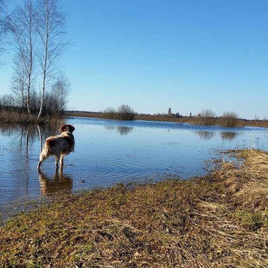 Бретонский эпаньоль любит воду и хорошо плавает.