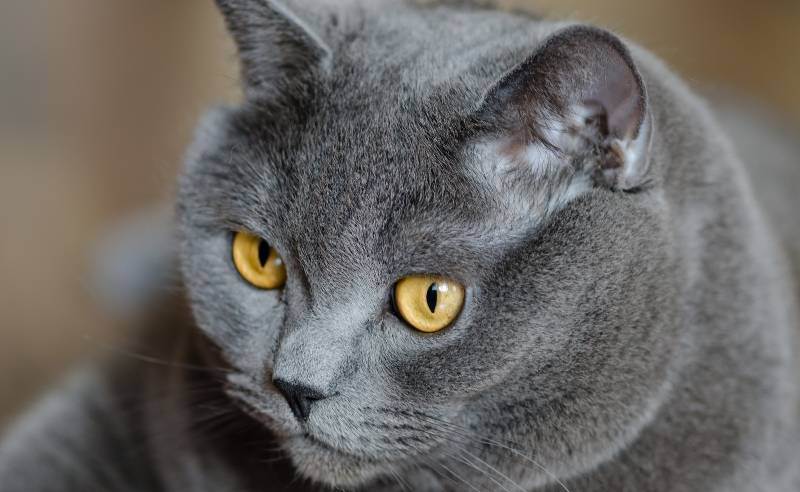 Встретить с голубым или зелёным цветом глаз породистого угольного британца, не допускается стандартом.