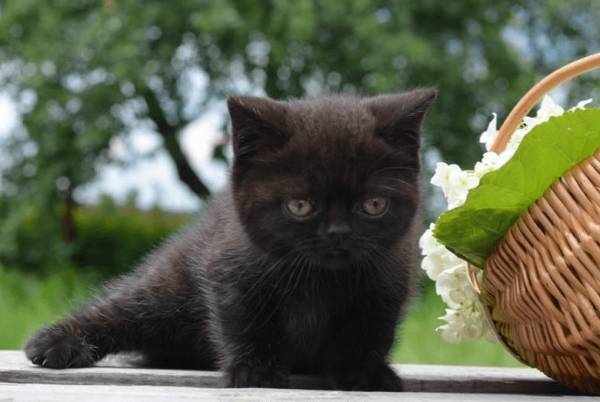 Черный цвет британца придает ему загадочности и таинственности. На самом деле черная кошка ласковая и общительная, обладает невероятной положительной энергетикой.