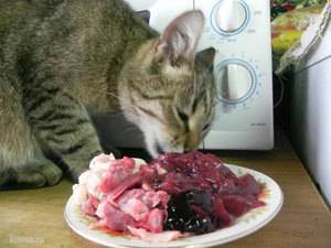 Кастрированный кот по-прежнему хищник, основной частью рациона которого остаётся мясо и субпродукты – 70% от общего объёма потребляемой пищи. Даётся любое мясо кроме свинины.