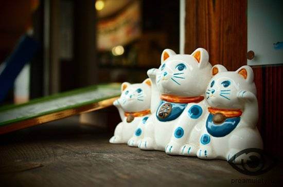 Человеку, желающему обрести процветание, стоит обзавестись трехцветной кошечкой. Японцы считают этих животных талисманами жилища. Они расставляют кошачьи фигурки «манеки неко» у входа в дома, считая, что статуэтки притягивают богатство. Кошка с поднятой лапкой олицетворяет материальное благополучие.