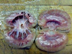При заболевании происходит расширение лоханки почки, ткань атрофируется, работа органа постепенно ухудшается и, как итог – у животного отмечается выраженная почечная недостаточность.