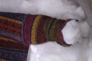 набиваем рукава и «туловище» синтепоном, сшиваем низ свитера;
