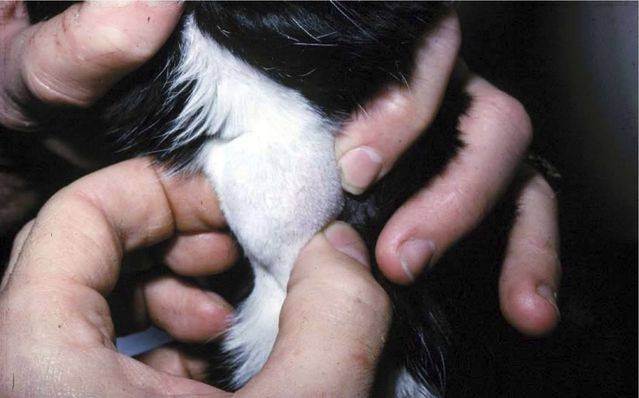 щитовидная железа при пальпации прощупывается вдоль трахеи животного.