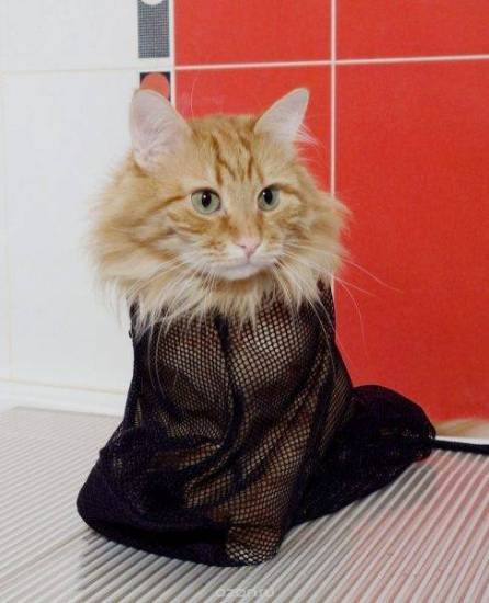 Сетка-фиксатор «Котокупальник», или сетчатый мешок для купания, поможет помыть любого агрессивного или испуганного котейку: животное фиксируется в сетке и моется в обычном порядке, руки хозяина в безопасности.