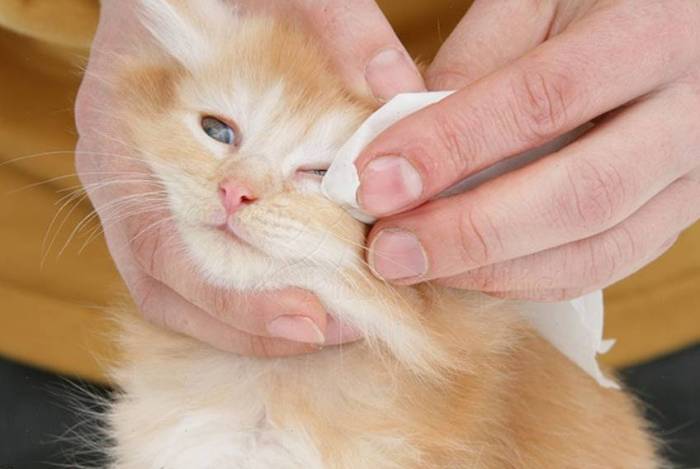 Гигиена – это чистка глаз, ушей и зубов, расчёсывание, купание, приучение к туалету. Глаза чистят по мере необходимости. Если у котёнка появились обильные слёзы или гнойные выделения из глаз, обращаются к ветеринару. Незначительные выделения или соринку убирают с помощью физраствора, хлоргексидина или ветерицина, в которых смачивают ватный тампон. Чистку проводят от внешнего к внутреннему уголку, иначе жидкость попадёт в глаз.