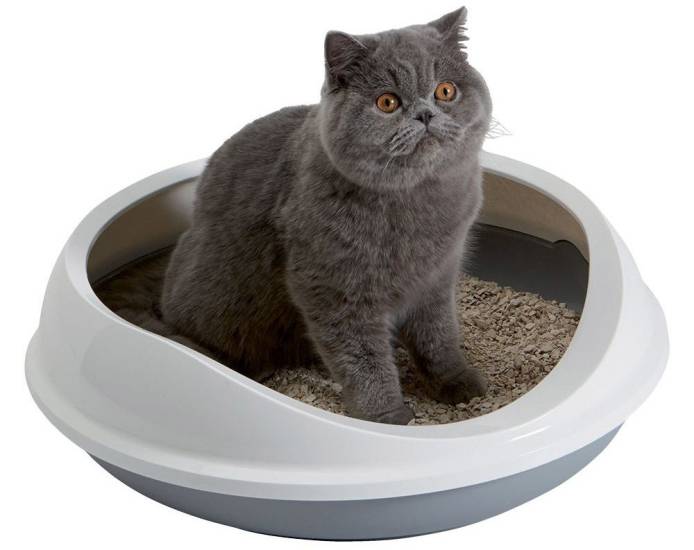 - Садят питомца в лоток и скребут его лапкой по наполнителю. Процедуру повторяют 2-3 часа.