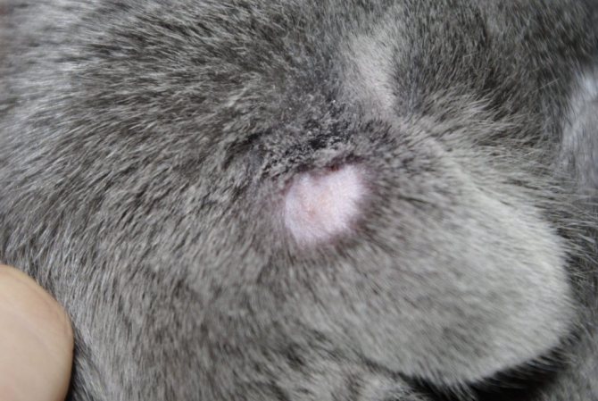 - на коже под шерстью возникает бледное овальное пятно небольшого размера;