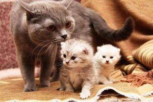 - Во избежание порчи собственных вещей (одежды, постельного белья), владелец должен отвадить британку от шкафов, кровати, прочих мест, где ей вздумается обустроить «гнездо». Лучше организовать уголок для матери и ее котят в тихом месте без сквозняка;