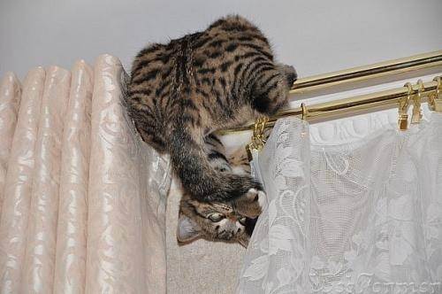 Территориальность – ободранные шторы, обои у входной двери и окон, говоря о беспокойстве питомца. Возможно, ваша мурлыка видит чужих кошек из окна или чувствует их запах возле двери. Царапая поверхности, питомица оставляет метки: «Я тут живу, территория занята!».
