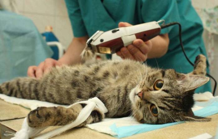 - Обрезать когти, чтобы после операции кошка себя не поранила.