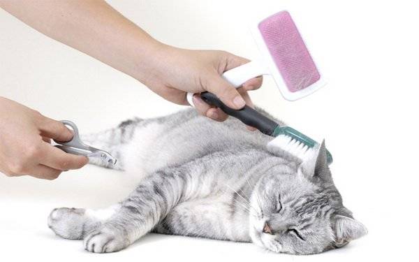 Для кошек такая процедура неприятна, поэтому ее нужно приласкать, разговаривать тихим голосом и дать ей лакомство, чтобы расческа и ножницы не ассоциировались у нее с неприятными моментами.