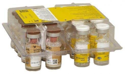 - «Леукорифелин» – вакцина, состоящая из двух частей – сухой и жидкой, которые смешиваются перед введением. Она обладает высокой иммуногенностью. С 3-месяцев можно вводить этот же препарат, который также вызывает иммунитет против бешенства, он называется «Квадрикат».