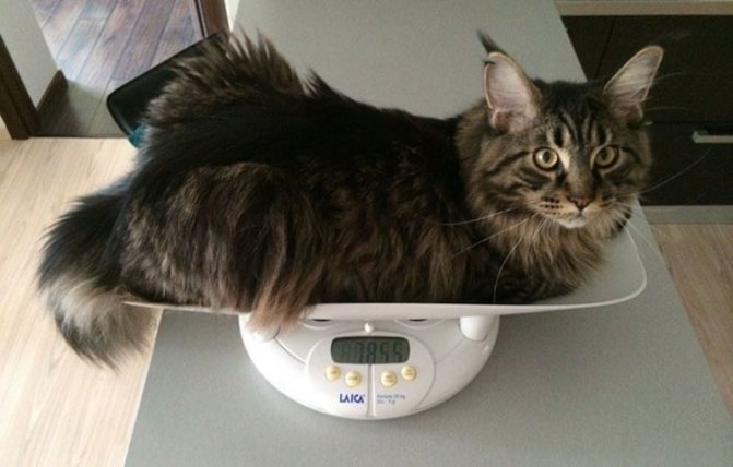 - Два года. Кошка достигает весовых показателей приблизительно 4.600 — 7.200 кг, а кот мейкун может достигать массы 10 кг.