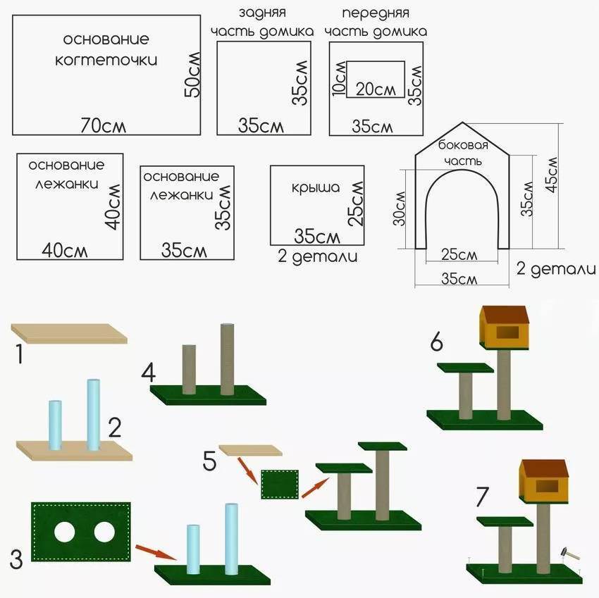 К любой схеме нужно рассчитать размеры, которые подойдут и под габариты комнаты, и для животного.