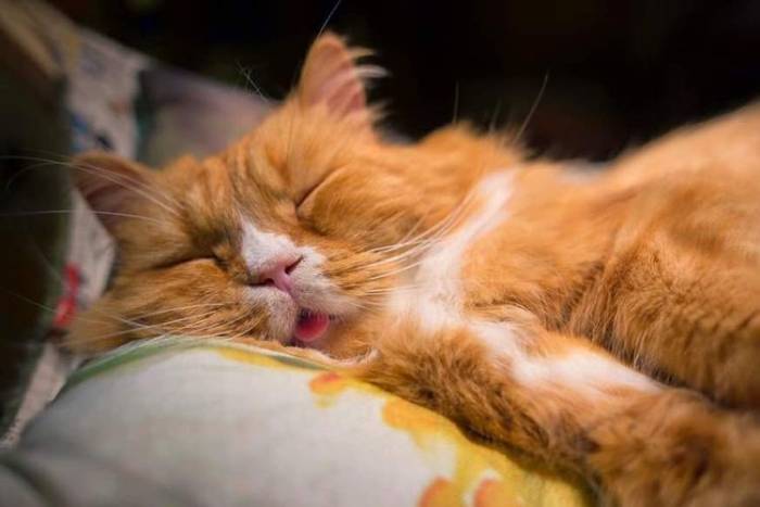 Даже если спящее на подушке возле головы животное причиняет дискомфорт, надо осторожно и бережно переместить его