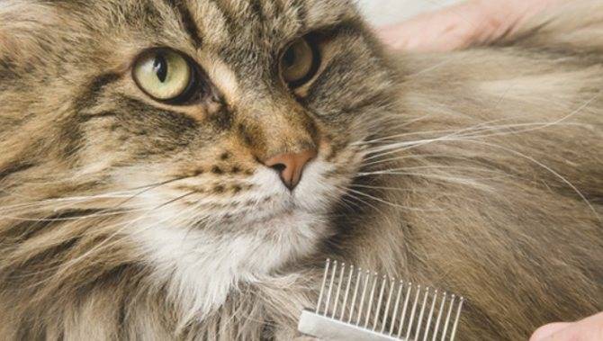 - расчёсывать кошку один раз в день или хотя бы раз в 2 дня в течение 10 минут, причём делать это нужно разными видами расчёсок: