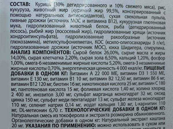 - Производитель не уточняет состав используемой курицы (и других животных ингредиентов). Её процент может включать не только мясо, но и субпродукты, кожу, хрящи и так далее.