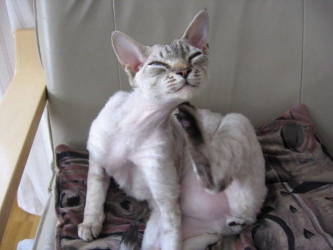 - кошка лижется и чешется;