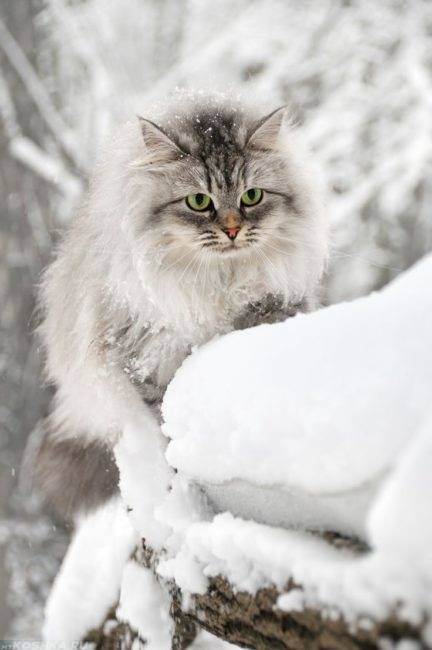 Шерсть у этих созданий также на зиму становится немного гуще и длиннее и, что примечательно, кошки зимой практически не линяют.