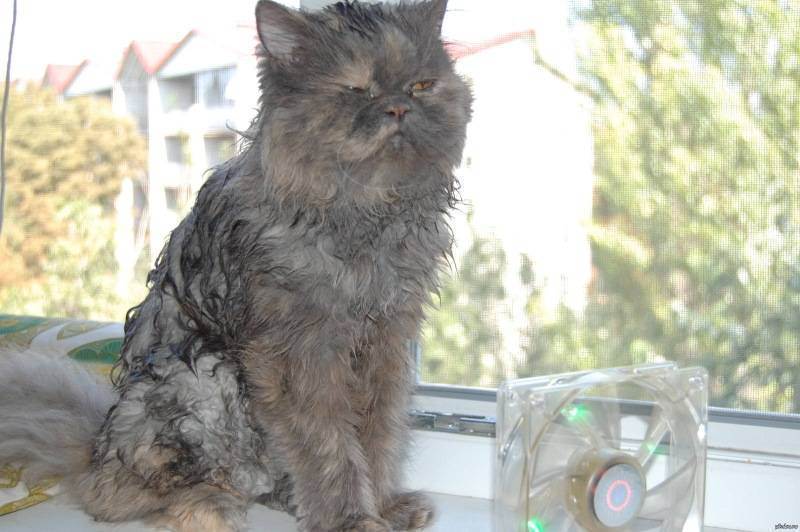 Даже если ваш питомец не любит воду, разместите в свободном доступе небольшую ванночку. Кошки не боятся воды, но не лезут в нее без необходимости. Повышенная температура воздуха, это самая естественная необходимость намочить шерсть, известная в природе.