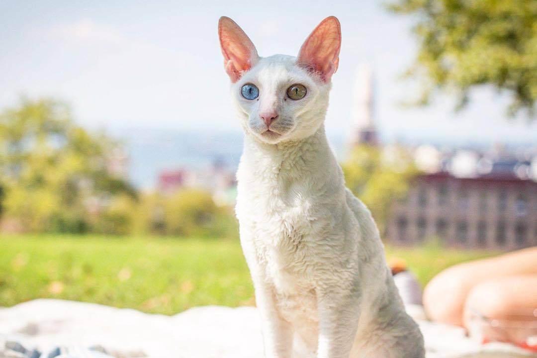 Белый корниш-рекс с гетерохромией