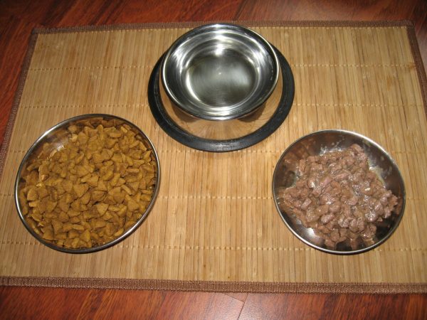 Поэтому большинство владельцев, выбравших смешанный принцип кормления, предпочитают давать разные корма в отдельные приемы пищи.