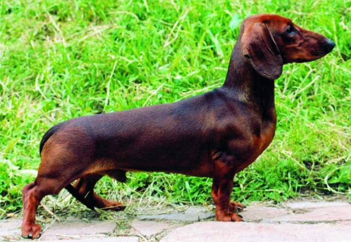 Приземистая, на коротких ногах и очень растянутая собака. Среди представителей породы имеются гладко-, жестко- и длинношерстные самых разных окрасов. Первые у нас более всего распространены. Передние конечности могут быть слегка искривлены.