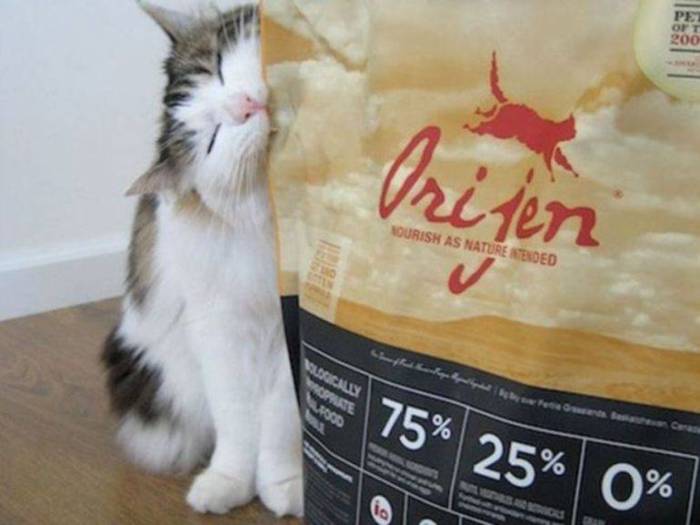 Если кошка всегда с радостью подбегает к месту кормления и поедает предложенный вами сухой корм, если у неё шерсть не теряет блеск, у кошки отсутствует неприятный запах изо рта, нет проблем с мочеиспусканием — тогда можно предположить, что «Ориджен» является качественным и эффективным продуктом питания вашего любимца.