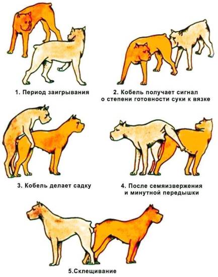 При спаривании животных собак имеет значение только готовность самки. Самцы готовы круглогодично и круглосуточно, очень редкие свидания плохо отражаются на характере питомца.