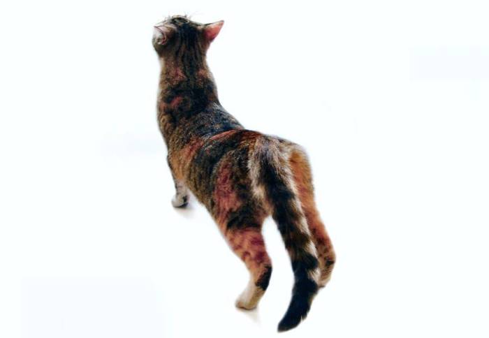 - Задние лапки кота бесконтрольно разъезжаются в стороны.