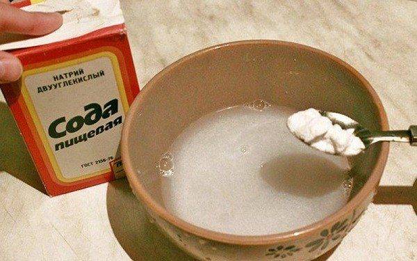 - Делаем жидкий пастообразный раствор соды в теплой воде.