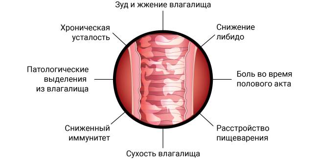 Основное проявление вагинита — патологические выделения. В зависимости от причины воспаления они могут быть обильными или умеренными (реже скудными), приобретать различный цвет (желтый, зеленый, сероватый, с примесью гноя или крови) и консистенцию (пенистые, «творожистые», водянистые, густые).
