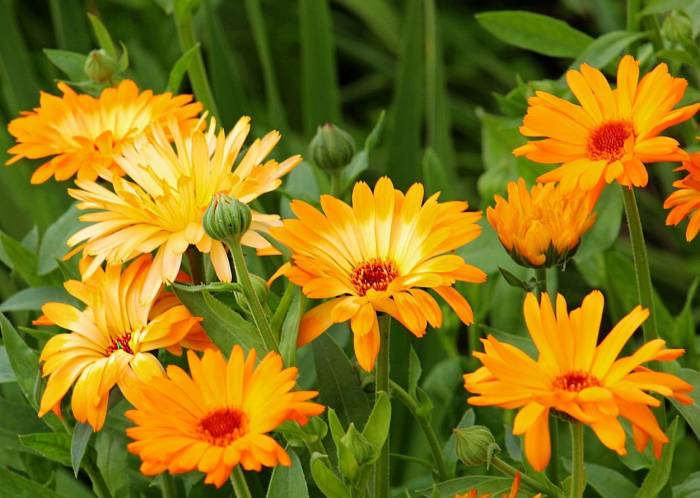Посадка календулы рядом с астрами и гладиолусами не только украсит садовую композицию, но и спасет их от черной ножки и трипсов. Однако не стоит забывать, что слишком близкая посадка к садовым культурам может спровоцировать замедление их роста, поскольку корни целебного растения обладают аллопатическими свойствами. Следует учитывать этот факт при посадке и выращивании календулы из семян рядом с редисом, базиликом и с другими огородными культурами.