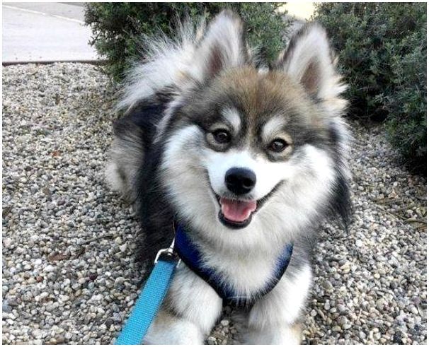 Знаете ли вы? Своему уникальному внешнему виду помски обязан исключительно прямому скрещиванию хаски и шпица. При последующем разведении полученная особь в следующих поколениях теряет свои признаки и получает большинство наследственных особенностей только лишь от одного прародителя.