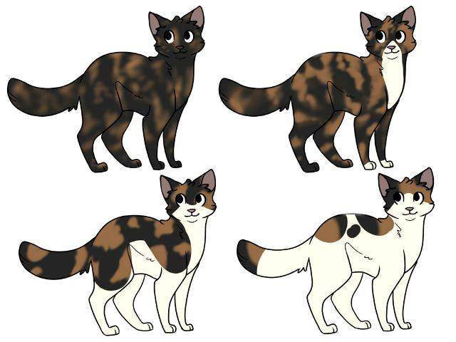 - Калико — сочетание черепахового окраса с белым, при этом белый цвет преобладает. В быту таких кошек также называют триколорными или трёхцветными.