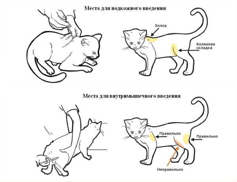 Инъекции делают один или два раза в сутки в одно и то же время специальной тоненькой иглой, кошка быстро привыкает к этой процедуре.