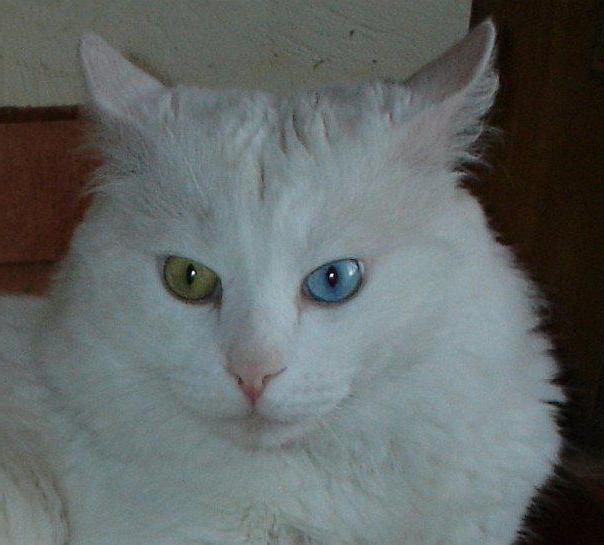 Помимо мягкой шерстки и покладистого характера, её представители отличаются наличием гетерохромии. То есть глаза у этой кошечки разного цвета – один, как правило, сине-голубой, другой – янтарно-зеленый. Под таким магнетическим взглядом мало кто устоит. Однако такая особенность свойственна только чистокровным представителям породы. Также ангора обладает интересной шерстью. Тело у кошки средней длины. Хвост у нее просто шикарный. Покрытый длинной густой шерстью, он смотрится по-королевски. Большинство представителей данной породы имеют белоснежный окрас, однако среди остальных можно встретить голубой и рыжий оттенки, а также бархатный черный. Несмотря на всю свою красоту, ангорские кошки имеют проблемы со здоровьем. Как правило, они страдают глухотой со стороны синего глаза, а также подвержены различным генетическим заболеваниям.