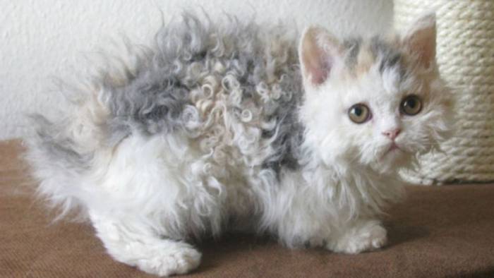 Английская кошка с короткой особенной шерстью. Она не имеет остевых волосков, а подшёрсток так плотно завит, что походит на каракуль.