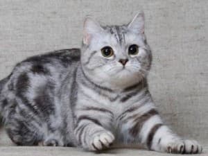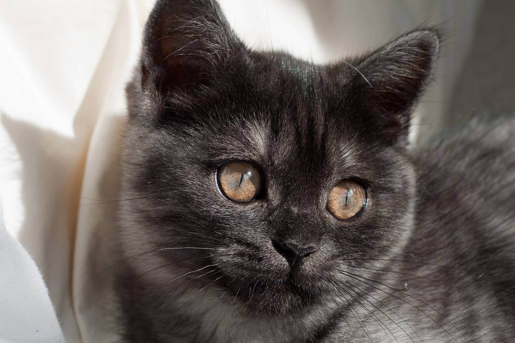 - Дымчатый. Кошка окрашена в серебристый цвет или черный дым. Шотландских котов с этим окрасом не допускают до выставок и соревнований.