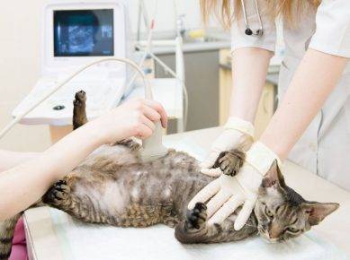 При первичном осмотре питомца врач может заподозрить цистит по наличию характерных признаков: частому мочеиспусканию, скудному выделению урины и болезненности живота.