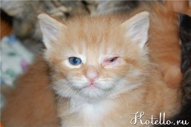 Почему гноятся глазки у новорожденного котенка?