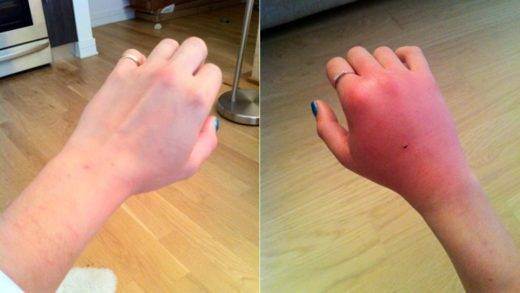 - при укусе за шею, палец или лицо возникает опухоль;