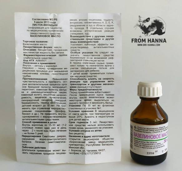 Вазелиновое масло внутрь применяется с целью выведения шерсти из желудка и нормализации стула.