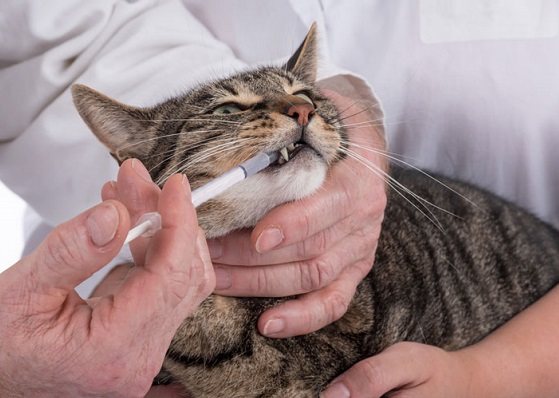 Чтобы свести риск к минимуму шприц помещают в угол рта, за клык. За 1 раз нужно вводить не больше миллилитра, чтобы кошка смогла сглотнуть и не подавиться. После того как лекарство из шприца полностью выдавлено, нужно прикрыть рот кошке, иначе она выплюнет жидкость. Поглаживание по шее поможет ей проглотить остатки средства.